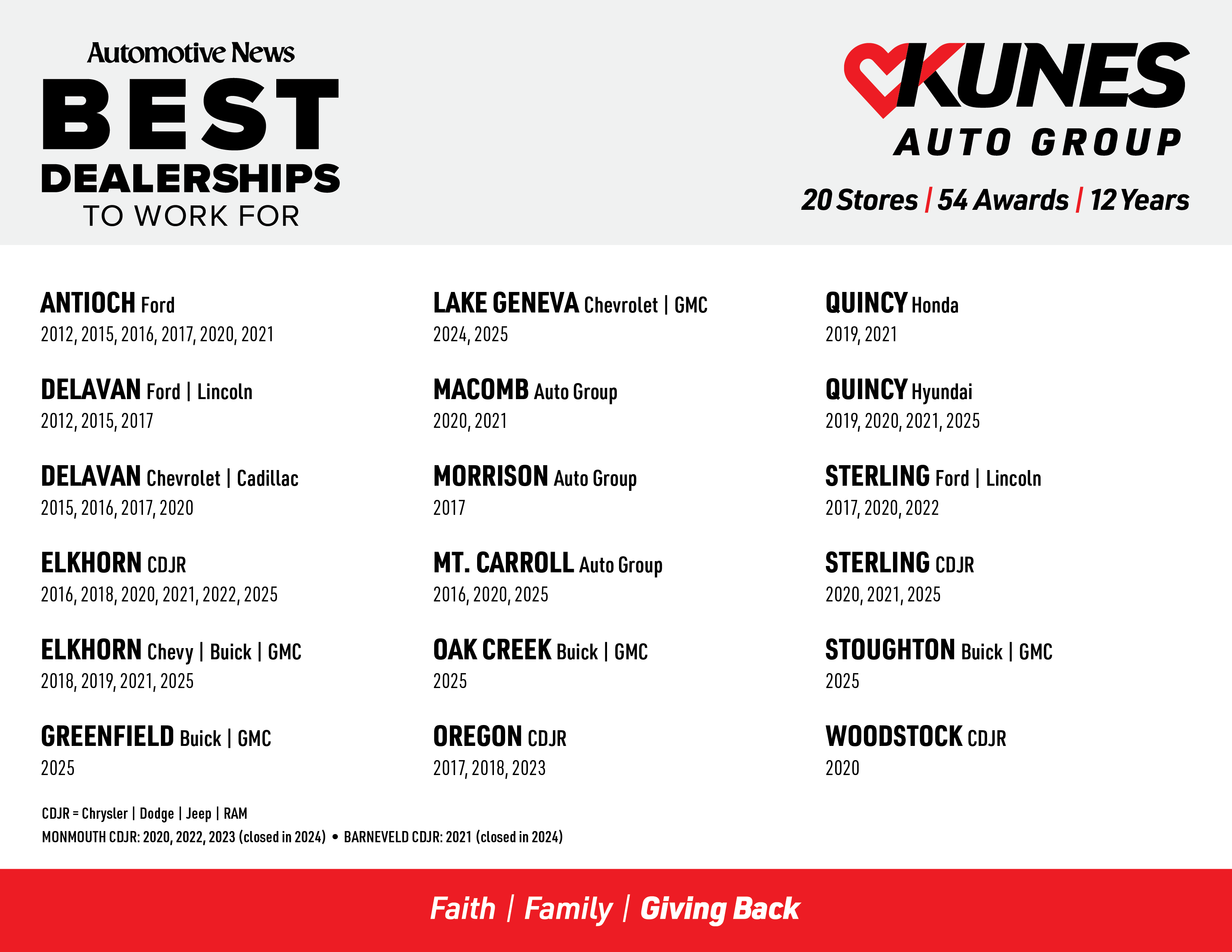 Here at Kunes Valley GMC, we take great pride in a creating healthy, high-functioning environment for the heart of the company...our staff. Kunes Auto Group has been named to Automotive News’ BEST DEALERSHIP TO WORK FOR list 52 times over 20 stores over 12 years. Only 100 dealerships across the US and Canada are named every year, and we are dedicated to providing the work environment that allows us this honor.